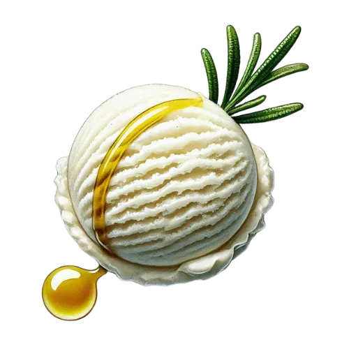 Un gelato unico e sofisticato che combina la delicatezza dell'olio d'oliva con il profumo aromatico del rosmarino, creando un'esperienza di gusto raffinata e sorprendente